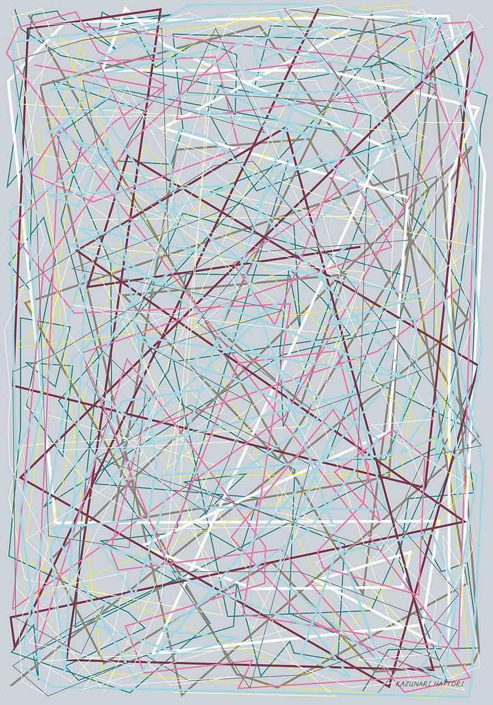 A poster created for the exhibition “VxF - Potential for Printing” held by Onoue Printing.It expresses a digital action painting with an improvised path.