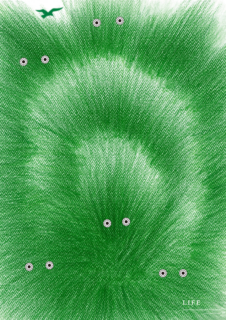 Kazumasa Nagai, a prolific artist with over 1,000 poster creations, has produced his series annually since the late 1980s, following a shift from abstract to figurative art. Centered on the theme of "life"—a fundamental concept for oneself, others, and all living beings—Nagai continually pursues fresh expressive approaches. He takes pride in defying expectations, including his own, by challenging artistic conventions and exploring new creative horizons.